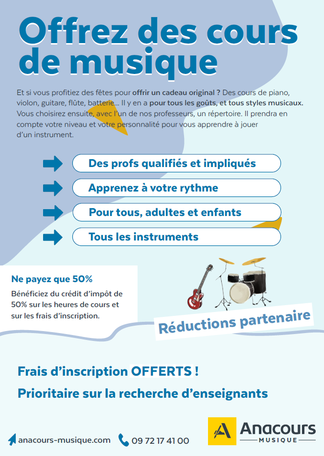 À l’approche des fêtes, c’est le moment idéal pour vous proposer une idée de cadeau originale et utile : des cours de musique.